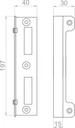 Zaczep do furtki, wysokość 197 mm, szerokość 40 mm, głębokość 30 mm. Pasuje do rozstawów zamków 72 mm oraz 90 mm. Produkt malowany proszkowo - kolor ocynk